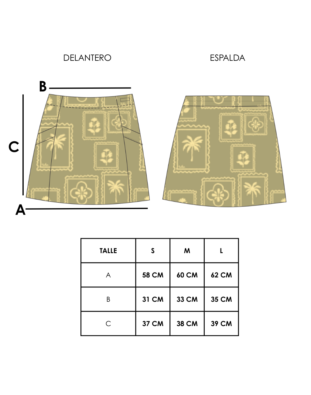 Nuestra falda más fresca y original. Está diseñada desde la combinacion de dos estampas que conviven, se acompañan y sobre todo se potencian. Dos universos que trasmiten paz y calma. Estan inspirados en la naturaleza, en dos elementos icónicos de India, la flor de loto y las palmeras.