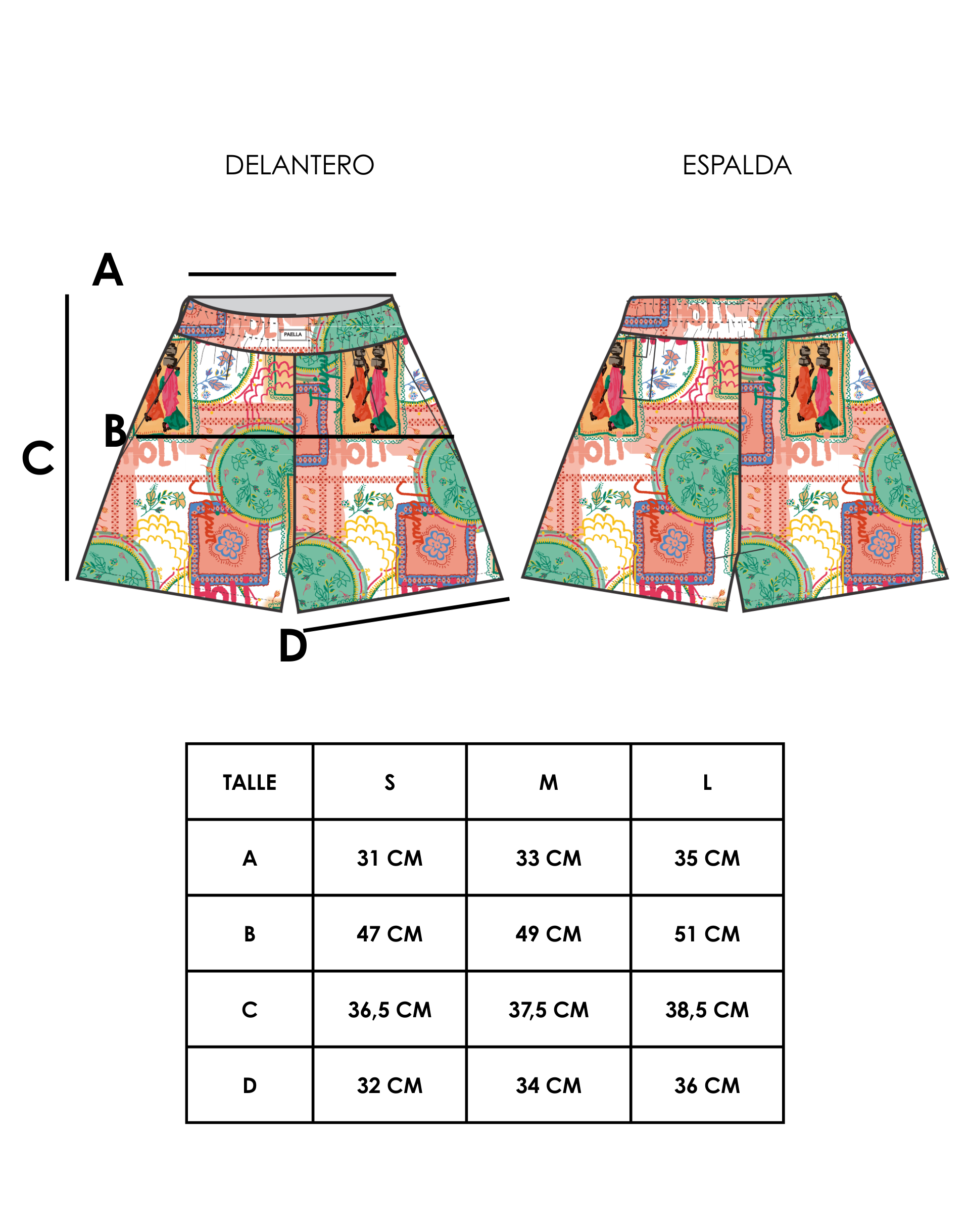 Nuestro short más alegre y fresco del verano, su estampa es 100% única está inspirada en uno de los festivales más coloridos del mundo: el Holi de India, una explosión de polvos de colores en las calles para celebrar la llegada de la primavera.
